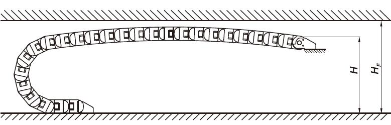 預應力指的是拖鏈運行時上部的上拱度。所有易格斯拖鏈都帶有預應力,無預應力的產品可按要求提供。預應力可以延長使用壽命,增加架空長度。在所有拖鏈的安裝尺寸描述中你都可以找到一個 HF 值。這就是在考慮預應力的情況下實際安裝高度。但空間受限時,我們可以按要求提供無預應力的拖鏈。但這類產品的承載力也與標準產品不同。
