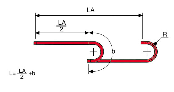 The chain length(L) is calculated by summarising the half stroke LA/2 to the nominal value(b) of the bending radius.